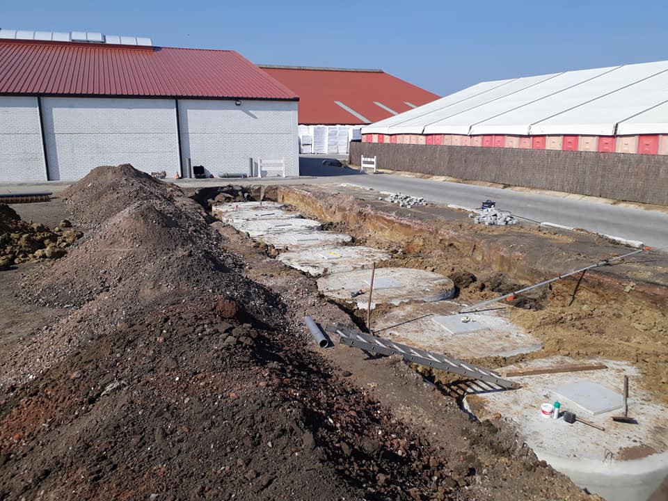 We plaatsen L-elementen voor mestsilo’s en keerwanden. De ondergrond wordt zorgvuldig voorbereid voor een stabiele en duurzame plaatsing.